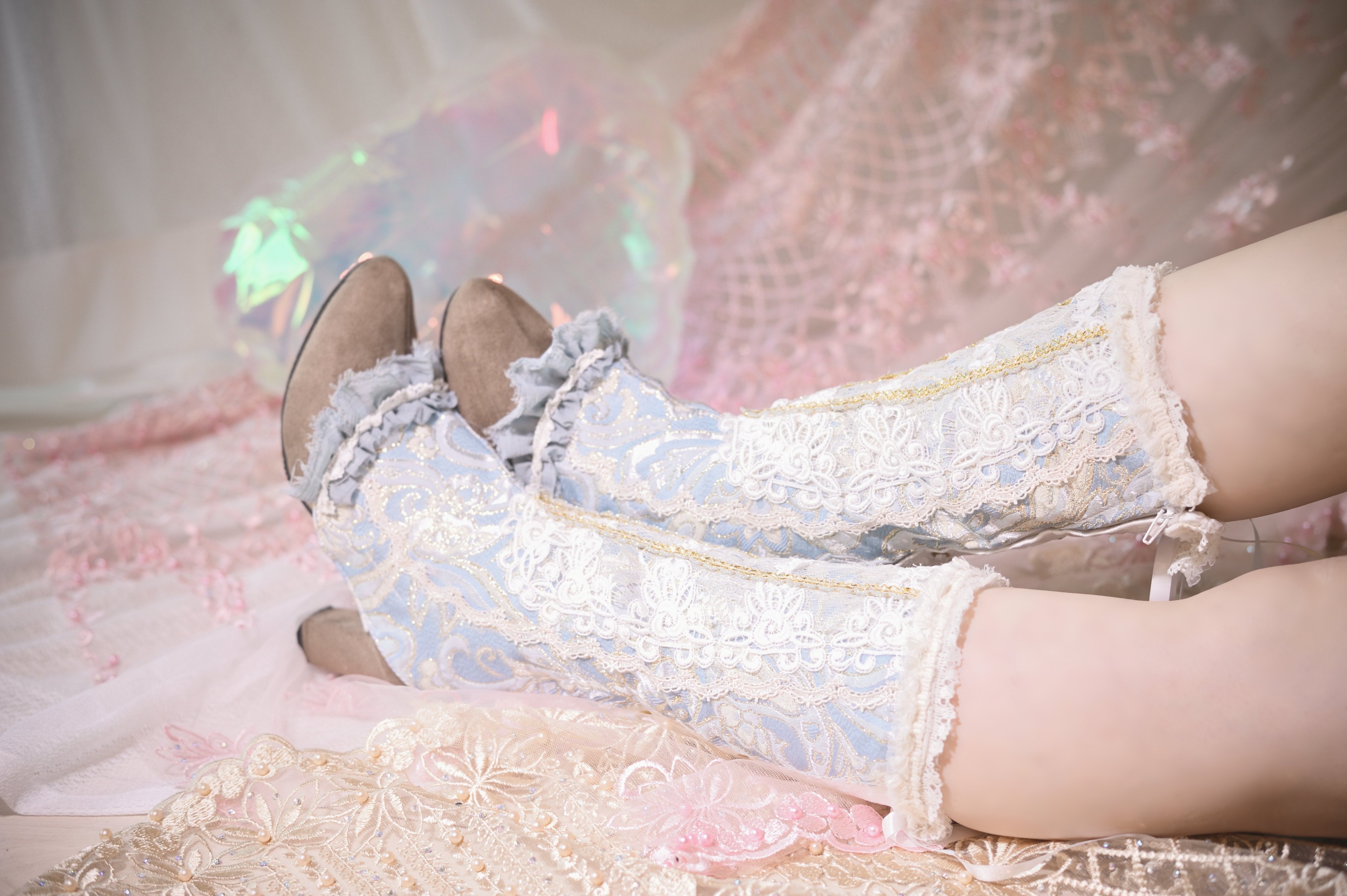 足元までロマンチック感を演出したかったため、原作では水色の長靴でしたが、ヴィクトリアン風ブーツカバーを製作してアレンジ。